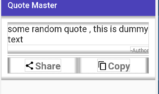 - Two buttons for Sharing Quote and one for Copying Quote text to clipboard