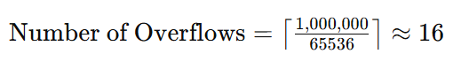 Since 1,000,000 is much larger than 65536, you need to handle overflow correctly. Each full timer cycle of 65536 µs means multiple timer overflows.